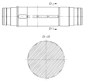 2.2 天輪軸磨損與銹蝕2.2.1 故障分析 據用戶反饋,唐口煤業主井的天輪裝置使用中存在異響。在廠內拆掉游動輪后,發現天輪軸上游動輪配合處有銹蝕、磨損、點坑等問題,并能清楚地看到天輪軸與游動輪配合處的“分界線”,天輪軸結構如圖7 所示。分析原因發現,由于天輪軸瓦潤滑不良,油膜形成受阻,導致游動輪軸瓦與天輪軸之間變成了硬接觸,磨損軸瓦和天輪軸,進而出現異響。
